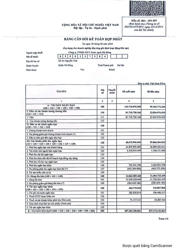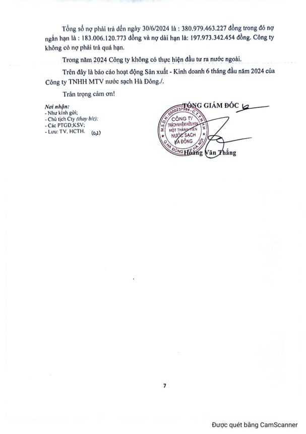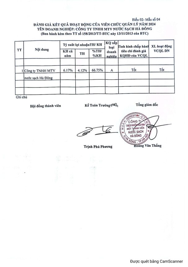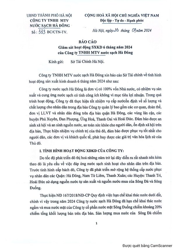 CÔNG TY TNHH MTV NƯỚC SẠCH HÀ ĐÔNG