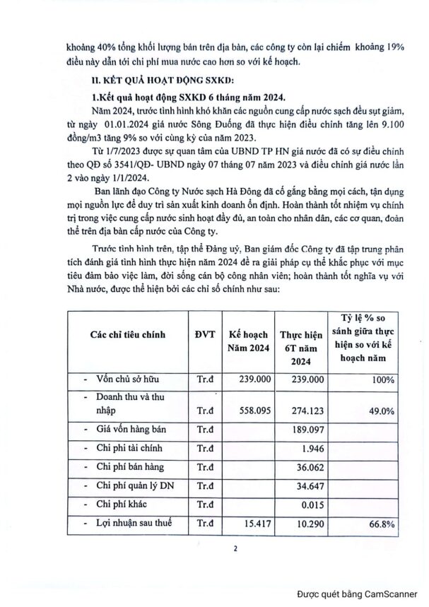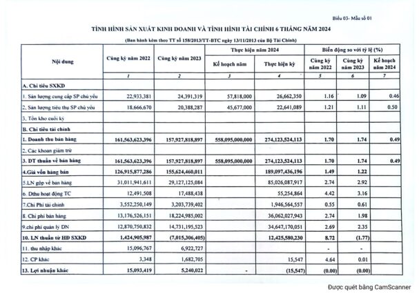 BÁO CÁO GIÁM SÁT HOẠT ĐỘNG SẢN XUẤT KINH DOANH 6 THÁNG NĂM 2024