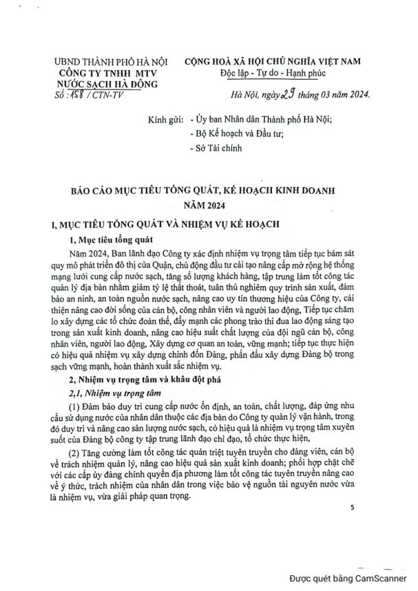 • BÁO CÁO MỤC TIÊU TỔNG QUÁT, KẾ HOẠCH KINH DOANH NĂM 2024