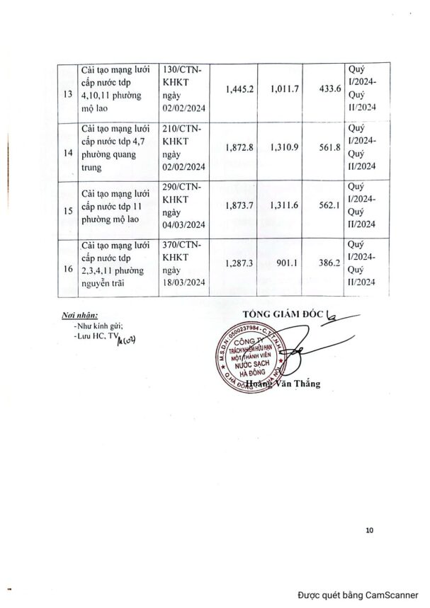 CÔNG TY TNHH MTV NƯỚC SẠCH HÀ ĐÔNG